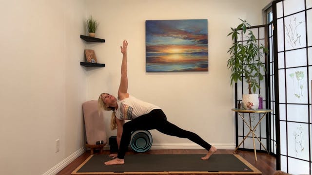 This class is a classic sequence of movement and flow. Breath, Sun Salutes, Standing poses, Core, Backbends, Inversions, Hip Openers. A few harder/fancy things tossed in to choose from as well. Lots of opportunities to check in and make choices that work for YOUR body and vibe.