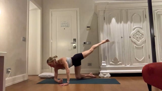 Join Maya for a quick full-body workout with no props required! Exercises include: arms without weights, standing legs, plank variations, side booty, c-curve abs, and more! Optional equipment: light hand or wrist weights, Pilates ball or small pillow