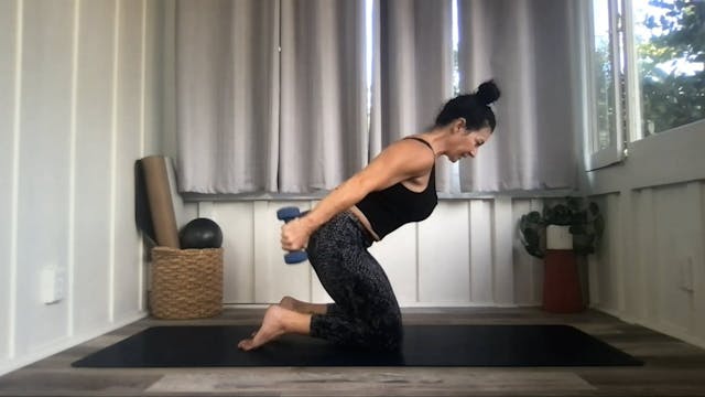 Try this 45 minute Pilates Mat class where Tracy focuses on the core and arms using a set of light weights.