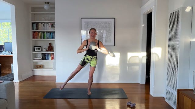 Join Maya for a quick, full-body workout that gets it all in! Exercises include: arms with and without weights, standing legs, plank work, side booty, abs, and more. Recommended equipment: 1-3 lb hand weights, Pilates ball