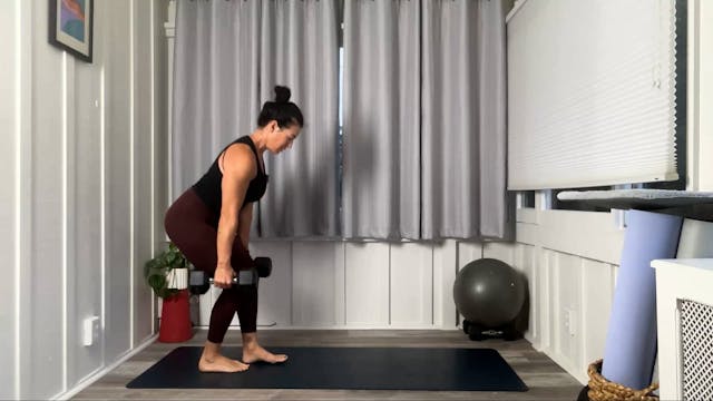 This 45 min class with Tracy starts with core and arms then sneaks into heavy legs (optional) for a full body burn!