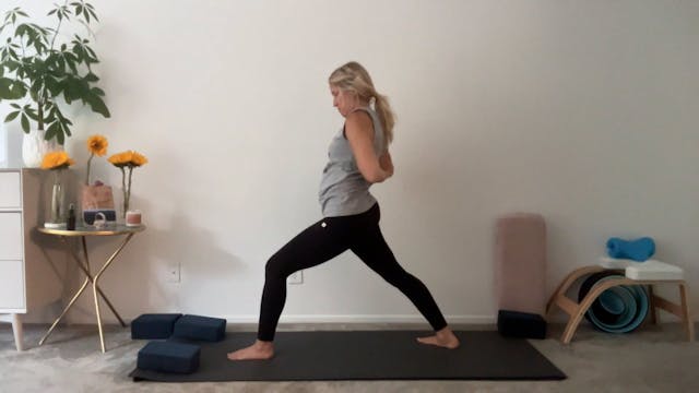 Slow it down. Attend to your hips and hamstrings in this end of the day sequence where you can unwind and let go of your minds day. Lots of hip and hamstring openers in the standing poses. We end with splits and core and chest openers. 2 blocks