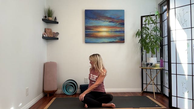 Focus is on twists. We root and play with where our grounding lands and how we can elongate and create space so our twists open our upper back and shoulders.