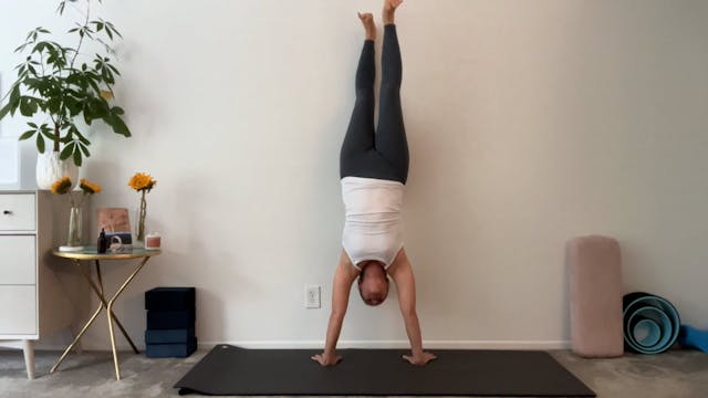 This class breaks down all the PARTS one needs to CONSIDER a handstand. Learn about the arms, legs, core, breath. It's a classic flow with lots of movement and standing poses leading you to try a handstand OR IMAGINE one! 2 blocks and a sense of humor.