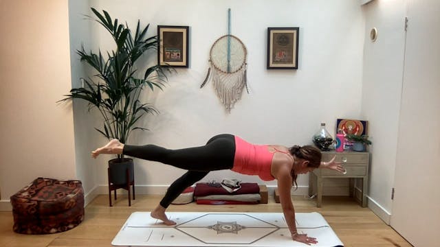 This is a strong flow that emphasizes outer and inner strength on your journey. The peak pose is scorpion, whether you get there or not doesn't matter. What does is being true to your path and where it is leading you. Recommended: two blocks and possibly a strap.